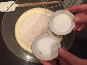Nun kommt das Mehl hinzu.