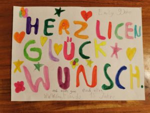 Emily wünscht: „Herzlichen Glückwünsch zum Geburtstag!“