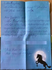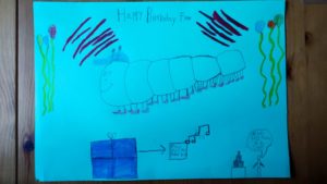 Hira wünscht: „Lieber Finn, alles Gute zum Geburtstag und übrigens, ich bin in der Schildkrötenklasse, viele liebe Grüße!“